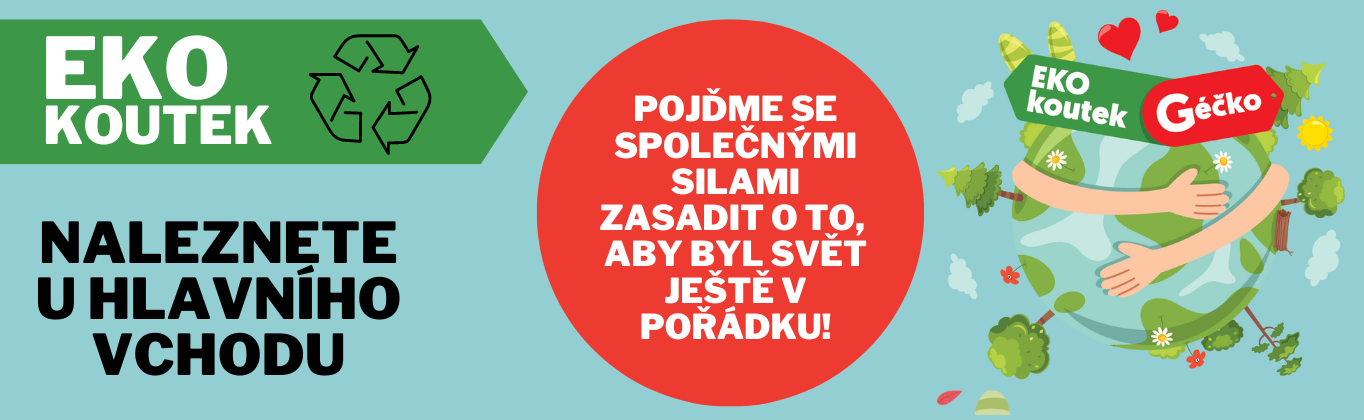 Náš EKO koutek se nachází u hlavního vstupu do Géčka, kde mohou malí i velcí zákazníci nejen vytřídit odpad vzniklý u nás v Géčku, ale nádoby využít i pro třídění baterií, nebo spořivých žárovek a lineárních zářivek, které mohou přinést ze svého domova.
