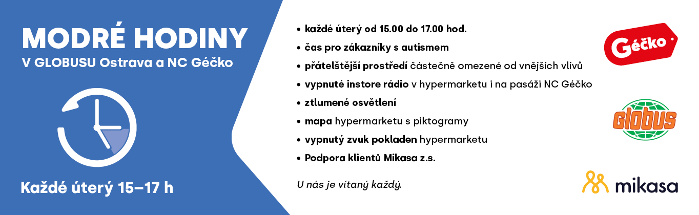 V rámci podpory organizace Mikasa z.s. a iniciativy hypermarketu Globus Ostrava máme každý týden MODRÉ HODINY.