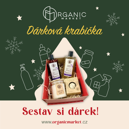 Letos pod stromeček něco jiného – dárek od srdce, který sami vytvoříte. Vyberte si naši krabičku s vánočním motivem (39 Kč) nebo elegantní červenou (49 Kč), a naplňte ji svými oblíbenými produkty z Organic Marketu. Ať už jde o voňavou kosmetiku, čokoládu, čaj, nebo doplňky pro zdraví – kombinací je nekonečně. Pokud hledáte inspiraci, mrkněte na náš článek s nápady, jak dárkovou krabičku sestavit a sladit do poslední mašličky.