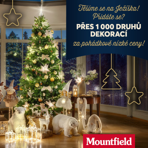 V Mountfieldu pro Vás přichystali více než 1 000 druhů OZDOB A DEKORACÍ, včetně nádherných umělých stromků. Vše za pohádkově nízké akční ceny! Připravili jsme pro Vás unikátní koncept stylových Vánoc, který zahrnuje ORIGINÁLNÍ A DESIGNOVÉ dekorace v moderních i klasických vánočních stylech: TRADIČNÍ / SEVERSKÝ / SAMETOVÝ / ZASNĚŽENÝ.