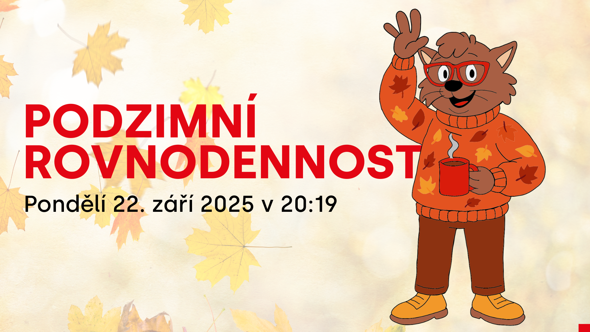 Dnes nastává podzimní rovnodennost – okamžik, kdy jsou den a noc téměř stejně dlouhé. Slunce se nachází přímo nad rovníkem a symbolicky tak vyvažuje světlo s tmou. Od této chvíle se začnou dny krátit a noci prodlužovat, až do zimního slunovratu.